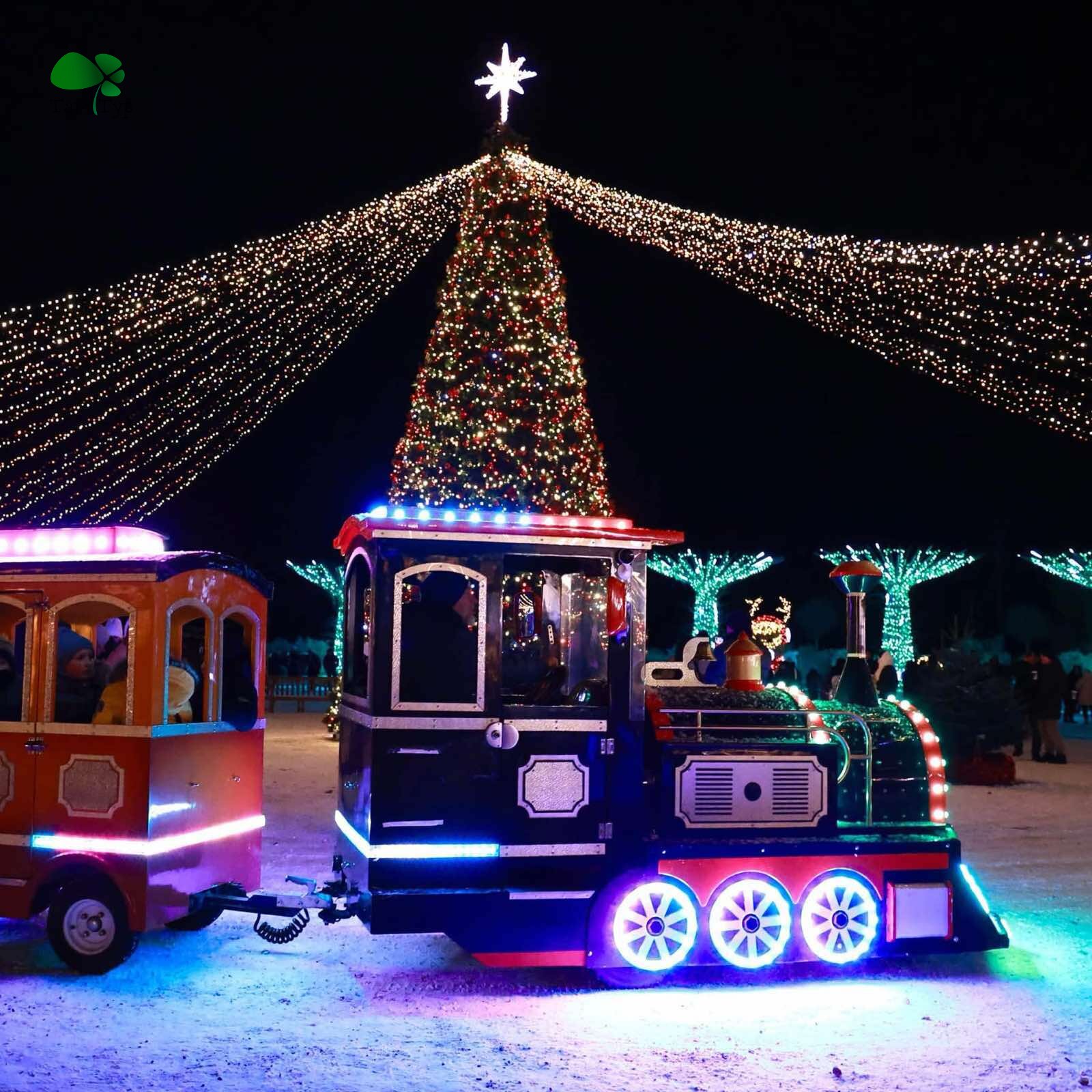 - Парк ілюмінації: Більше 700 км різнокольорових гірлянд, що перетворюють поля парку на казковий світ.